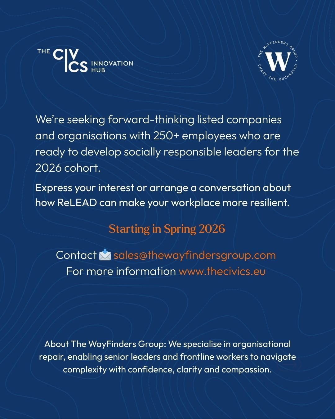 The WayFinders Group is the UK delivery partner for The Civics Innovation Lab, and we’re looking for two businesses with 250+ employees to pilot the ReLEAD programme in the UK starting in spring 2026.
